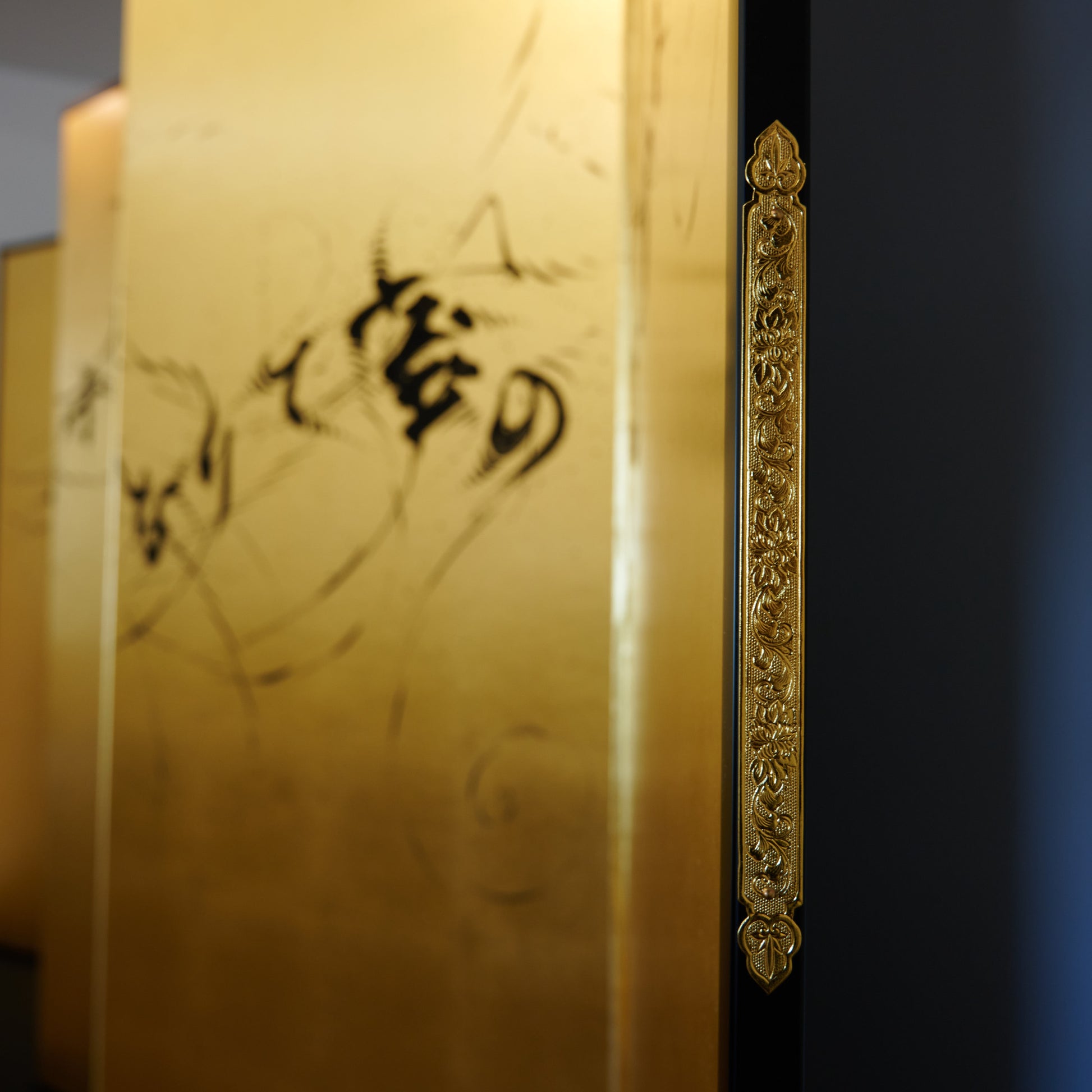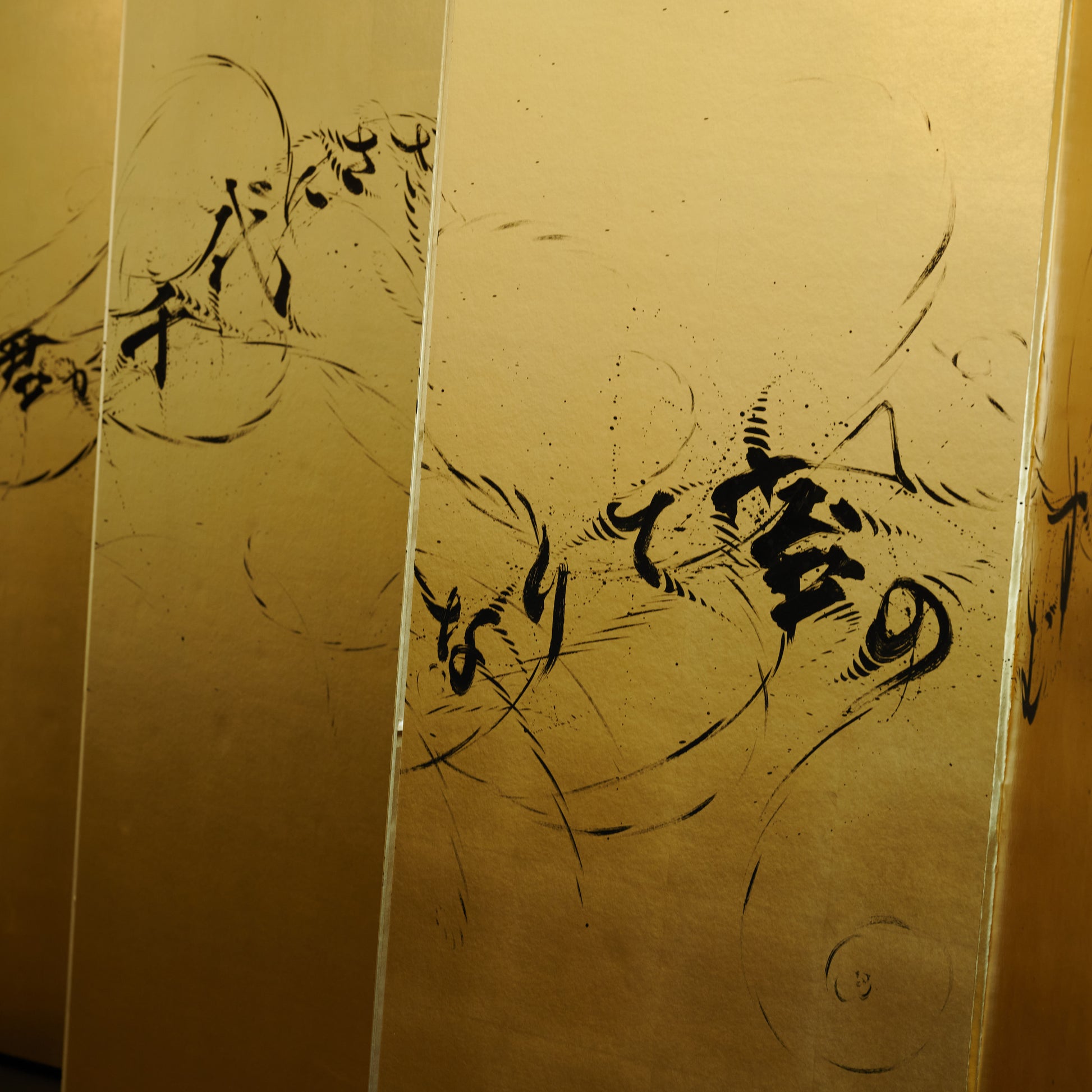 素材:金箔、紙、木材、墨、アクリル絵の具